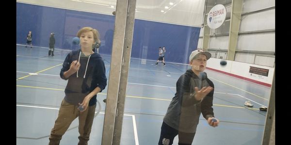 Goaltenders receive a fresh set of racquet balls to keep for continued use after camp.